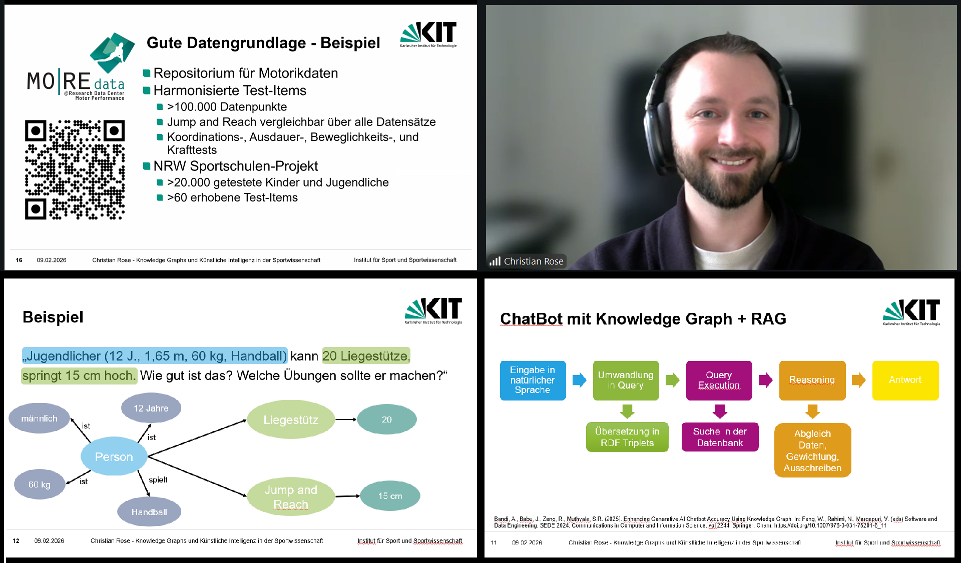 Im Rahmen der Love Data Week 2026, organisiert von forschungsdaten.info, hielt Christian Rose einen Vortrag über den Einsatz von Knowledgegraphs und Künstlicher Intelligenz in der Sportwissenschaft.