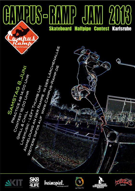 On Saturday, 08 June 2013, a skateboard contest will again take place at the Karlsruhe Campus Ramp.