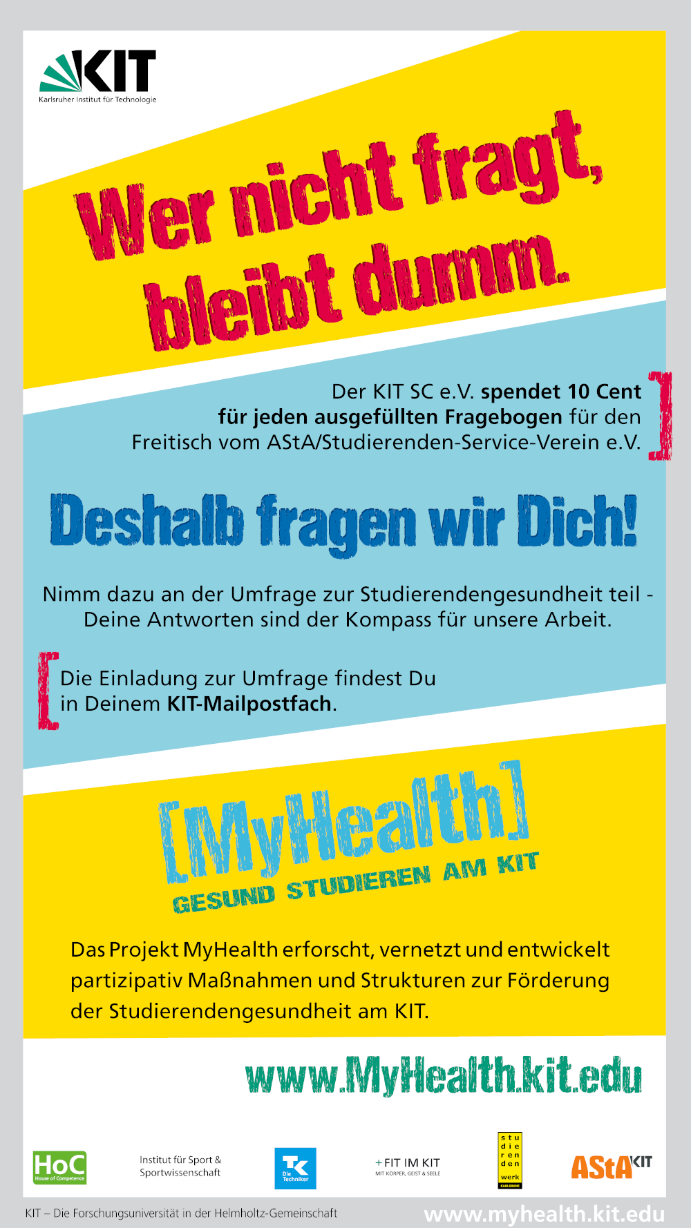 From February 12, 2019 to the end of March 2019, a survey of all KIT students on their subjective perception of their own health status and behavior will take place.