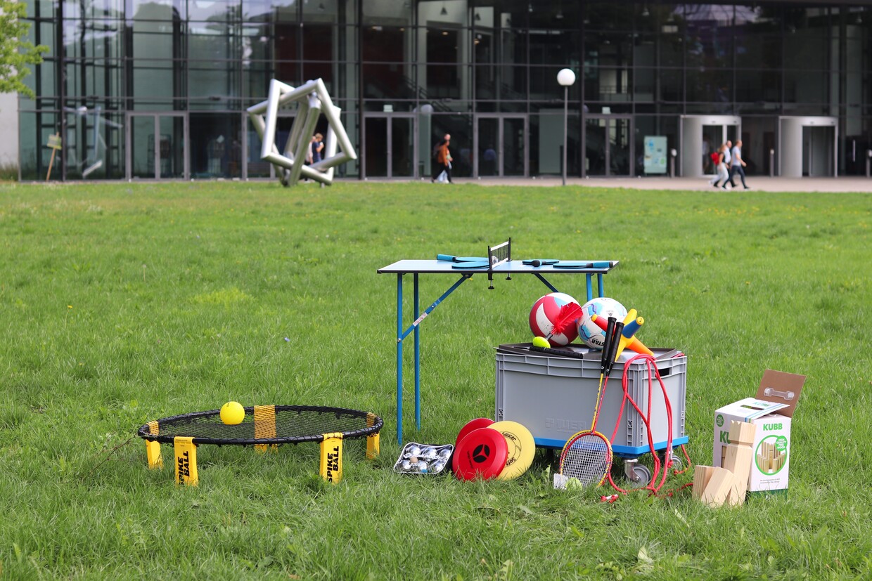 With the “Spiel und Sportkiste 2.0” project from the Student Health Lab, supported by the AStA, KIT students can spontaneously borrow all kinds of games and sports equipment for free from their student council – perfect for a quick round of spikeball, badminton, or Kubb between classes. The boxes don’t just help you stay active during your studies – they also bring people together and make campus life more fun. You can use them anytime, even at events like the orientation week (O-Phase).